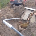Der blev i baghaven fundet en gammel drænning “brønd” af en art som var lavet i mursten, så den måtte der lige styres uden om.