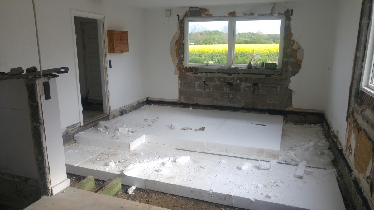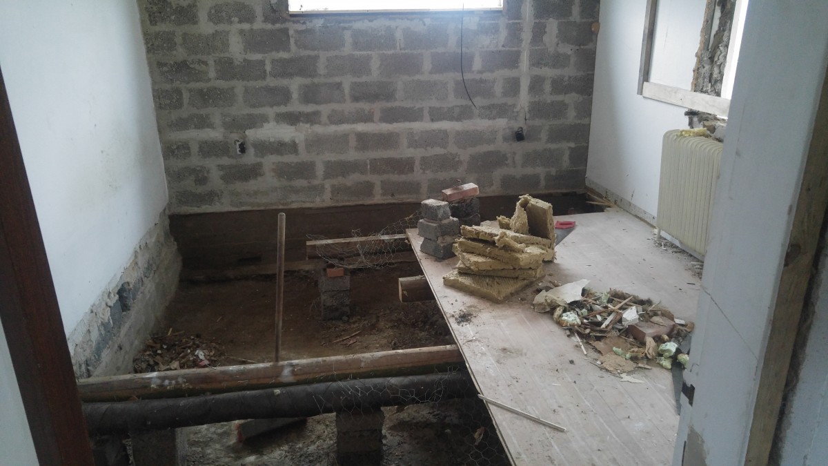 Der er krybekælder alle gulve, så det hele er revet op og klargøres til at få gulvvarme i stedet, sikke et arbejde..