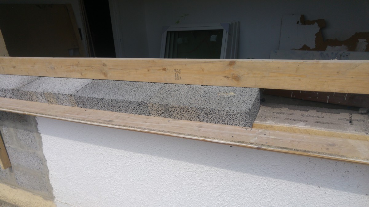 Den udvendige vindues karm laves i 5 leca blokke, da de havde samme størrelse som den anden side, og var noget nemmere end at skulle til at mure 30+ mursten.