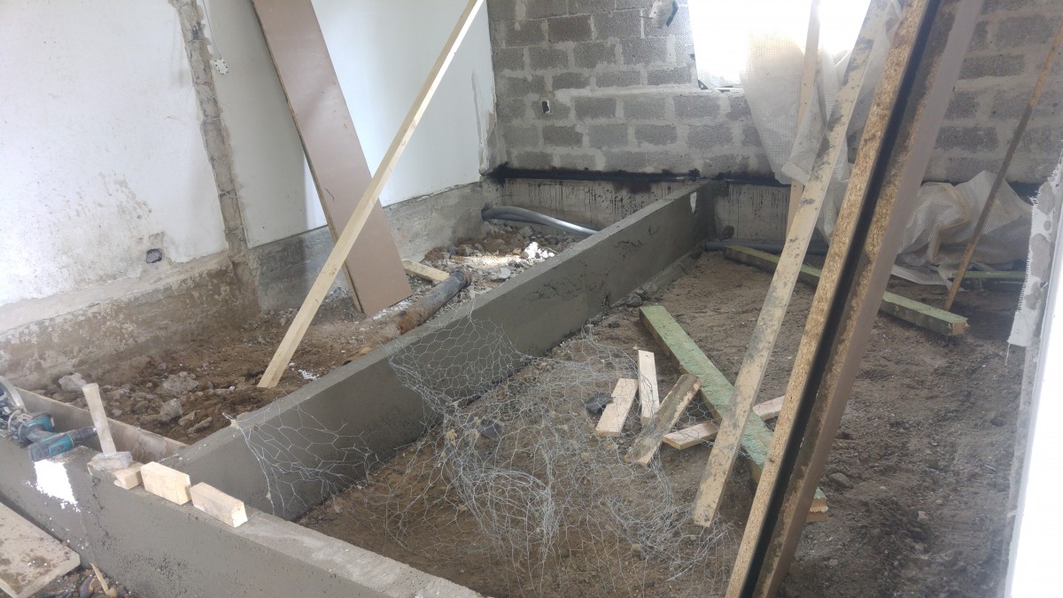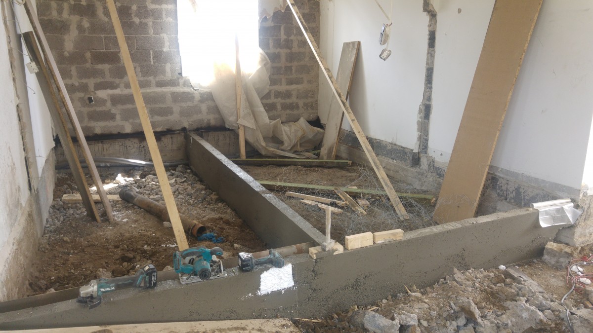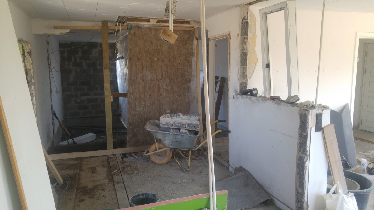 Midt i huset er der røget en del vægge, da badeværelset var alt for småt og dumt placeret, der laves derfor 2 nye rum, hvoraf det ene allerede er blevet støbt færdigt.