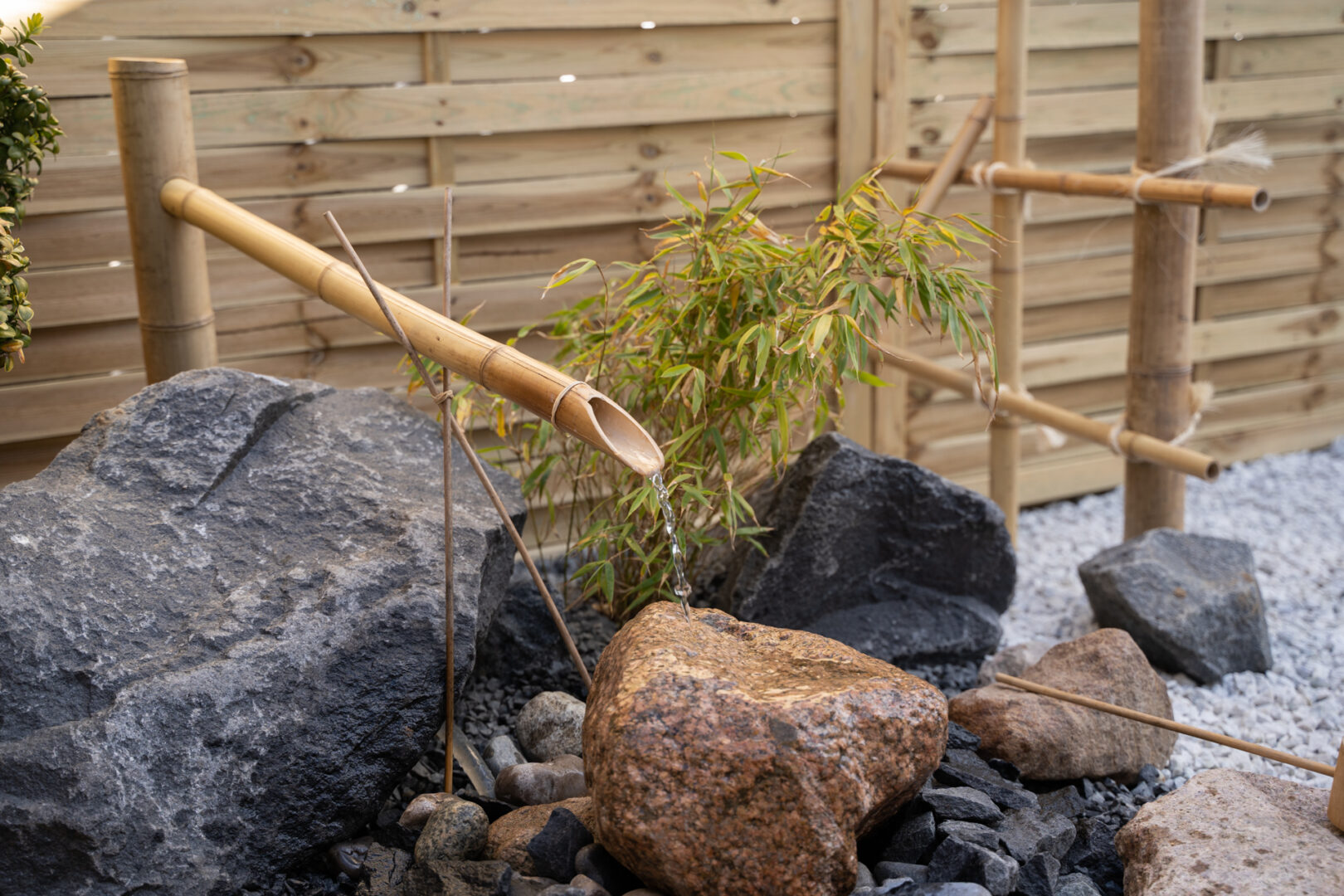 Mit vand i haven har jeg dog måtte lave om, da bambussen og specielt den anden prydgræs der nu står højere end mig selv, tog overhånd og fuldstændig dækket min tsukubai. Dette er nu flyttet til min fiskedam.