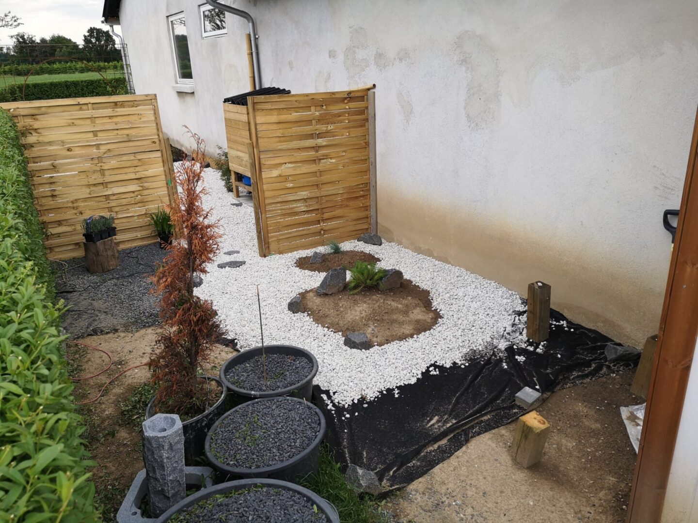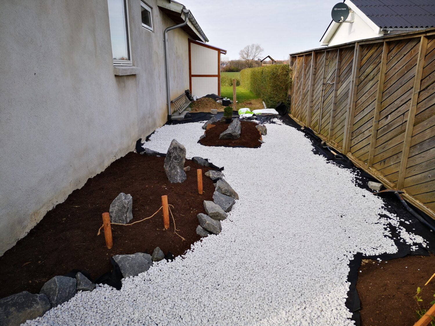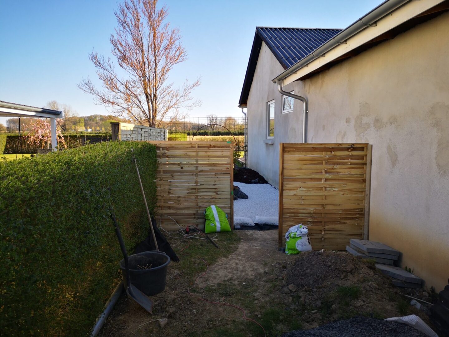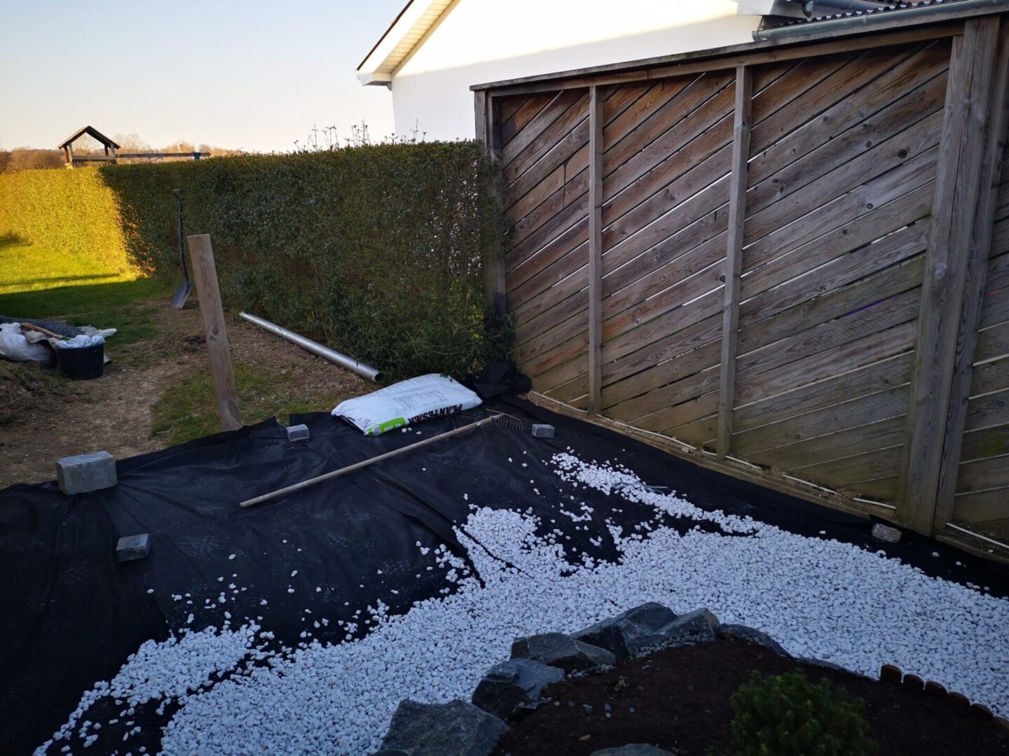 Så kommer der pynte hegn op ind mod nabo. Det gør alligevel noget ved hele indtrykket.