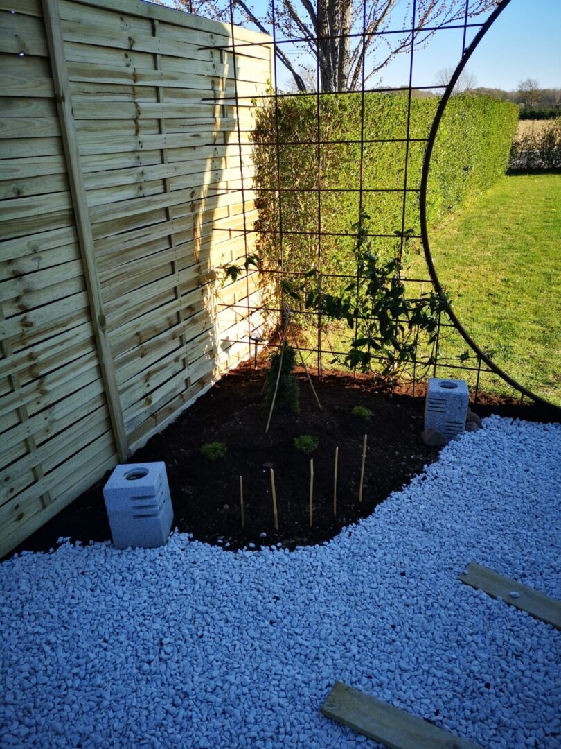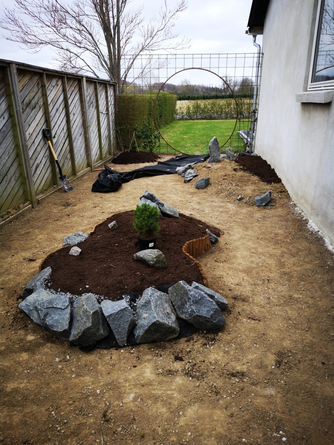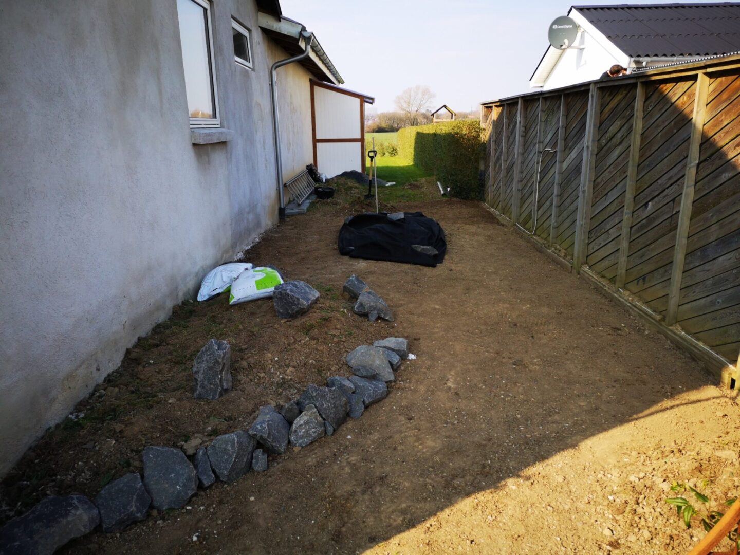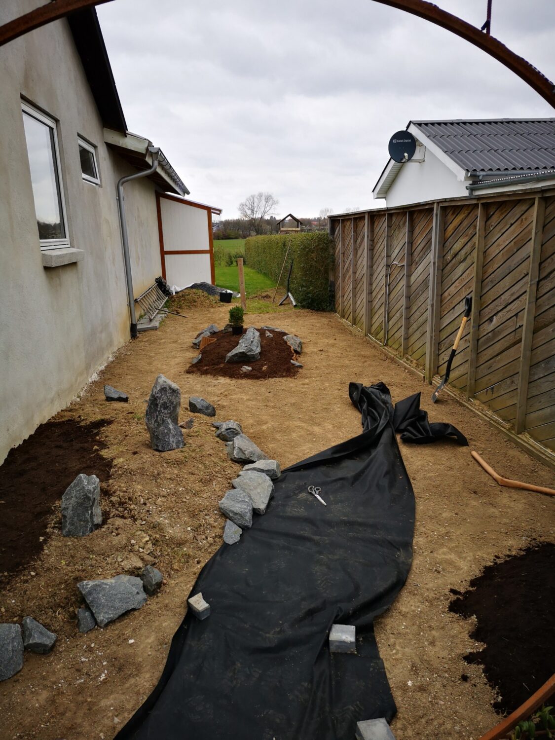 Så kommer der pynte hegn op ind mod nabo. Det gør alligevel noget ved hele indtrykket.