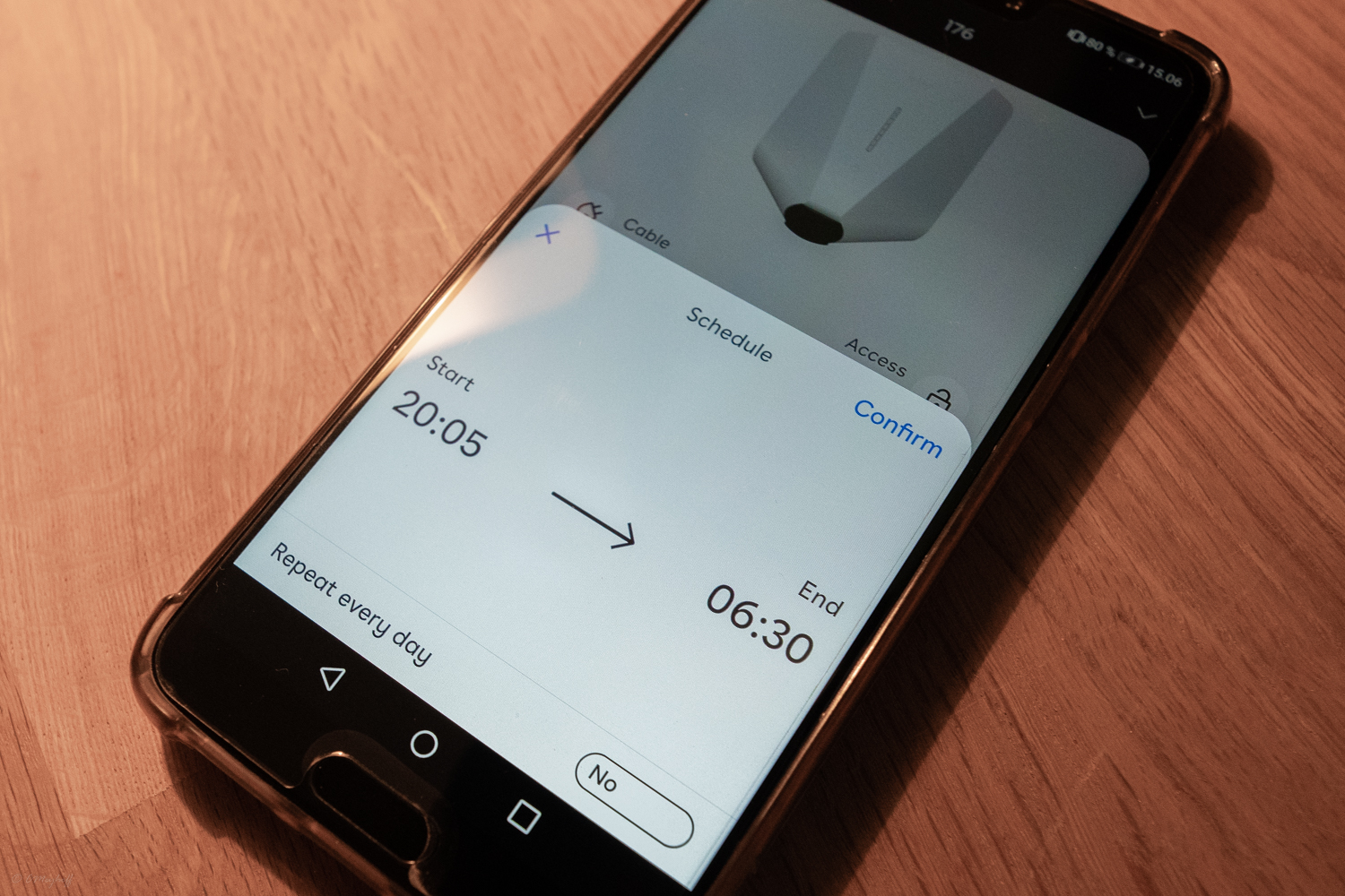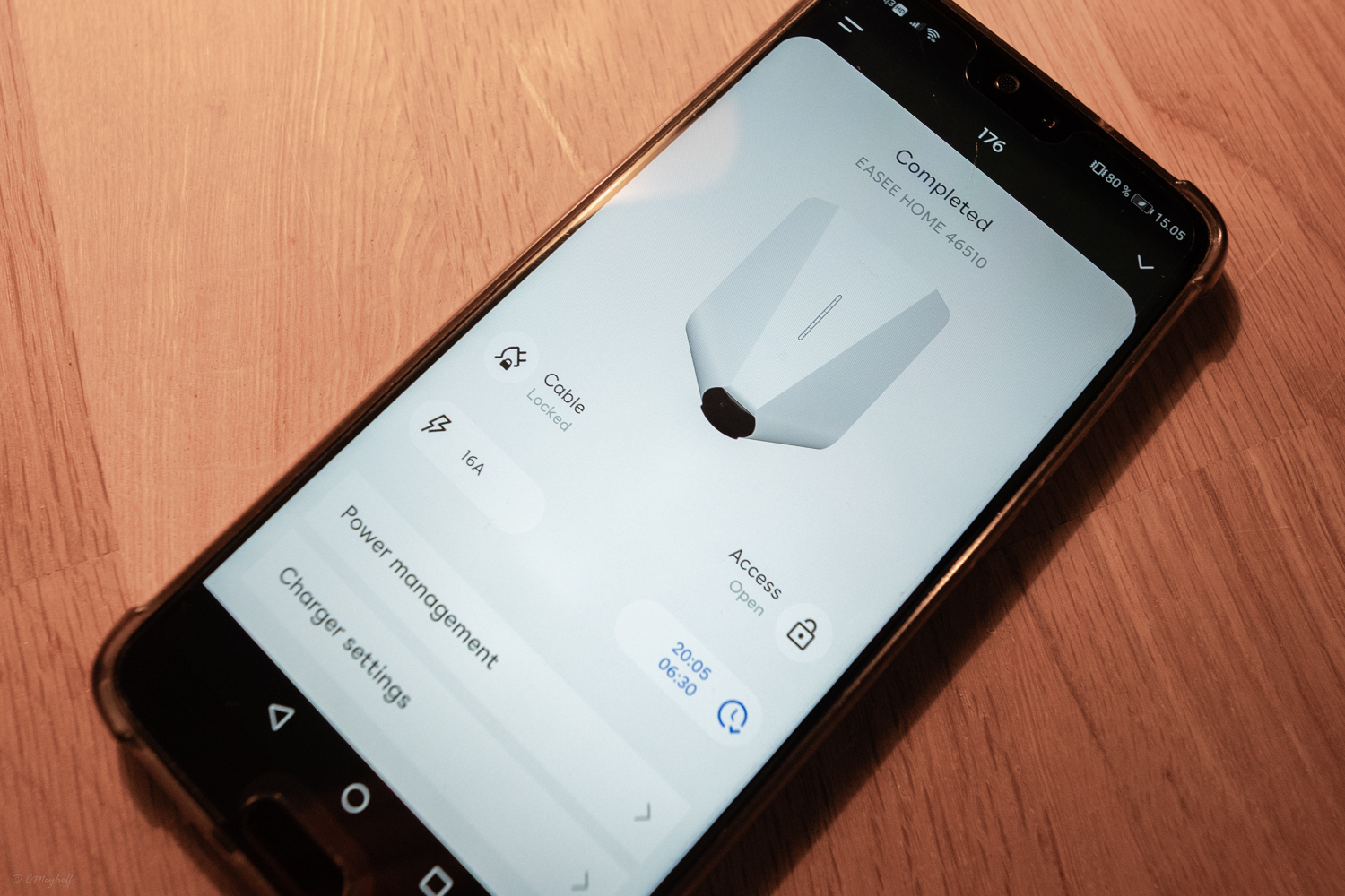Med indbygget modem, får den selv automatisk adgang til nettet, men der er også mulighed for at tilslutte den til sit WIFI. Alt opsætning foregår som nævnt i appen, dog er der ikke det helt store at sætte. Jeg har dog lavet at der ikke må lades før efter kl 20:00, da jeg har tidsdifferentierede tariffer på mit el.